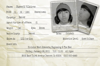 Come show some support to LilG303 and GL JoJo or should I say *clears throat* Eugene M. Villalovas & Joseph J. Perea along with Division West Presents: Presents; Beginning & The End. The title kind of sounds like a Diggy mix tape, but I'm sure the dynamic art duel will shine on Friday January 28, 2011 7:00-11;00pm all ages 2632 East Third Ave Denver Colo 80206